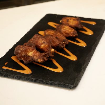 Alitas de bbq acompañadas de salsa búfalo 🦬, 6 unidades.