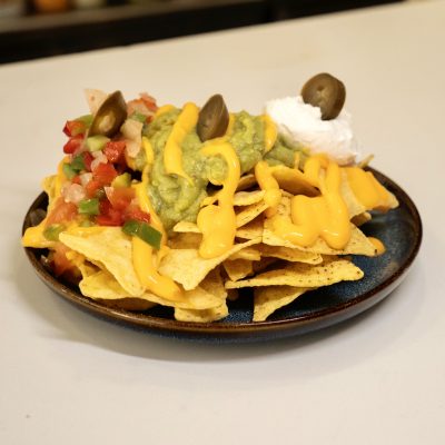 Price: 9,80€ Menu: Entrantes, Especiales Author: victor Con guacamole, salsa agria, cheddar, pico de gallo y jalapeños. 🌶️