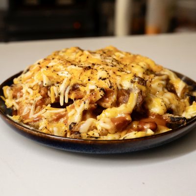 Price: 13,50€ Menu: Patatas 🍟 Author: victor Patatas fritas con pulled pork cocinado a baja temperatura con bbq, salsa búfalo y queso gratinado.
